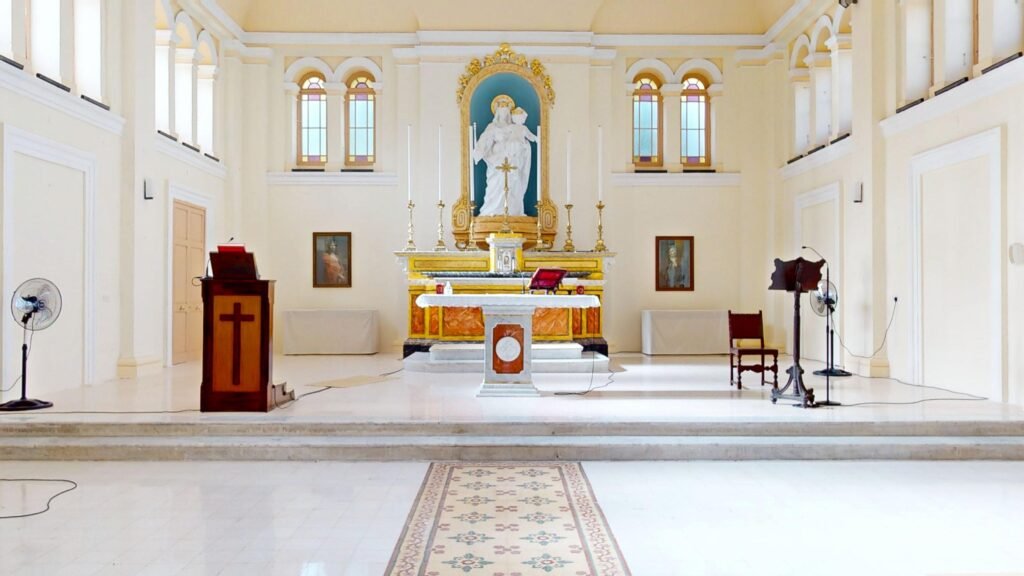 The structure incorporates traditional Maltese limestone, with restrained ornamentation and a focus on functional layout. The altar area is clearly defined, ensuring visibility for elderly congregants, and seating arrangements are designed for ease of movement, including provisions for wheelchairs.